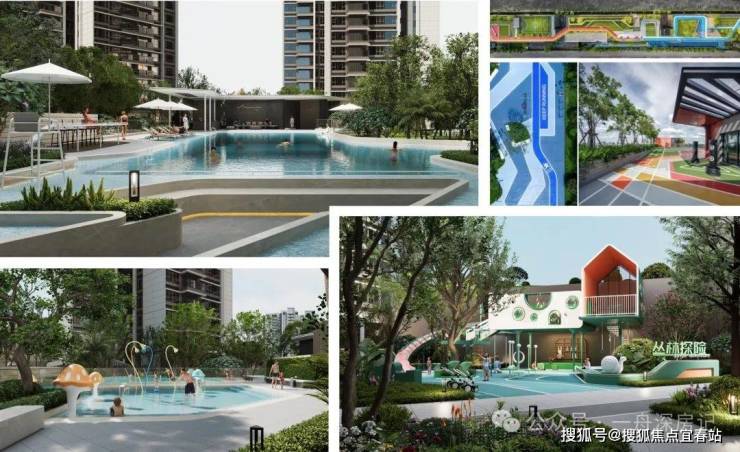 :超大规模园林,打造一个功能复合化&多维立体的园林景观,摩登泳池、森系儿童乐园、四季隐形轻氧跑道等多功能场所。