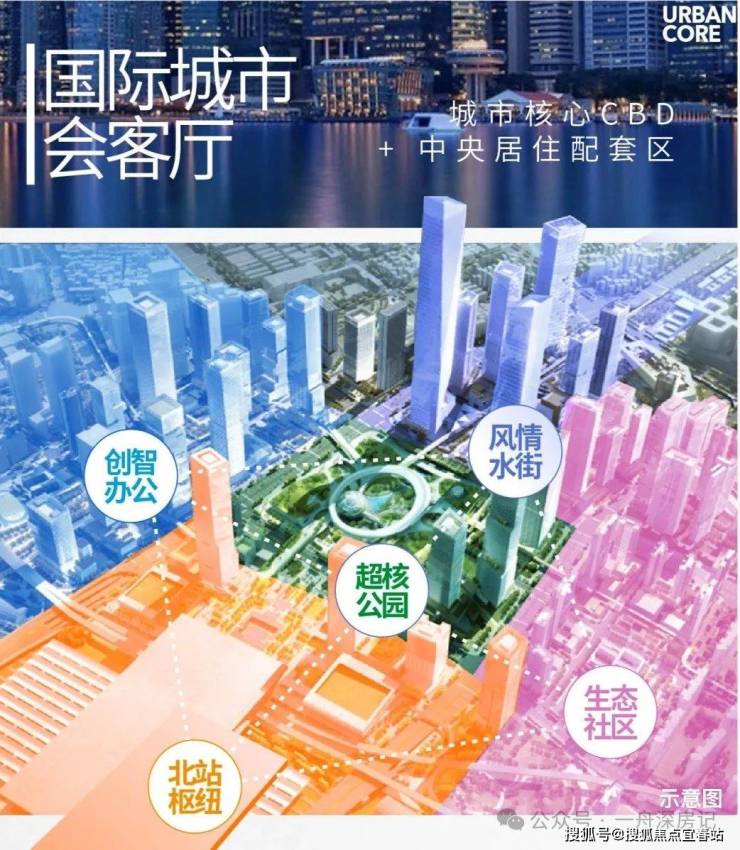 深圳北站总部基地作为七大总部基地之一,2000 亿巨资投入,以高标准缔造深圳中芯,形成多元复合的国际会客厅,在北站总部基地升级后,以城市超核为中心,打造全新体验的城市新封面,成就湾区未来枢纽超级地标。