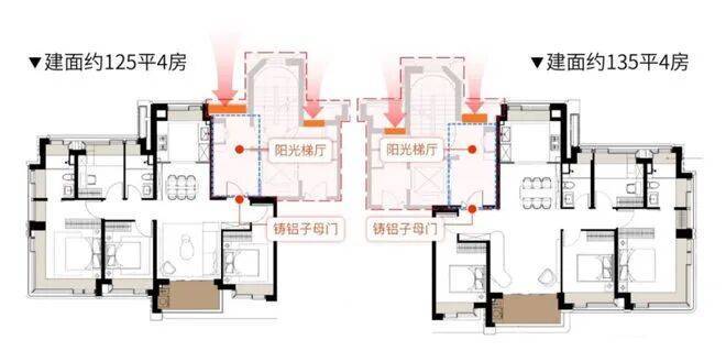 建面约125m²,约1000万起即可上车更舒适的边套四房!