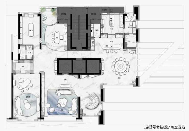 这是一个面积约700㎡的顶层复式,优质存量,重装上阵,记录着珠海仁恒·滨海中心的设计与思考的长旅,于是一条隐约的设计思路呼之欲出:找回海洋。