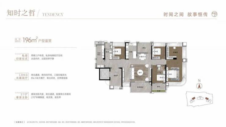 196平户型,做了双主套,客厅、卧室、阳台等开间尺度也比同面积段产品更大。