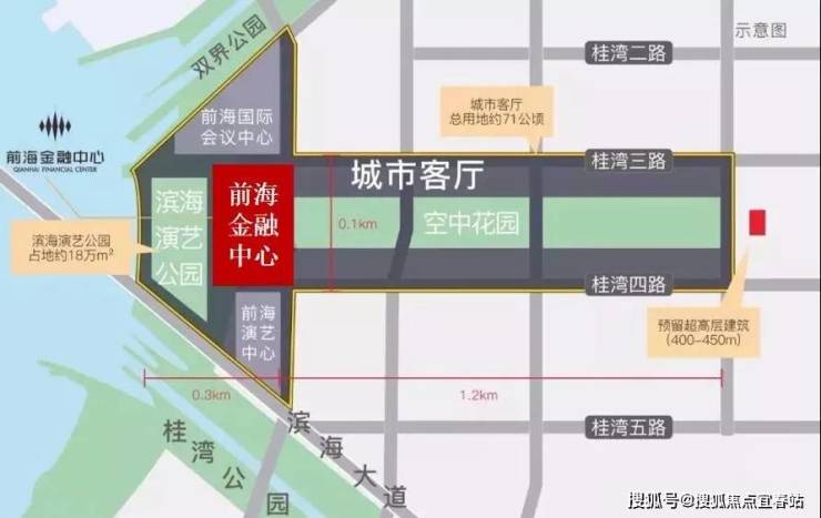 前海金融中心QFC,位处城市客厅正中, 粤港澳大湾区桂湾片区核心占位,“一湾两山五区四岛”、“两带一港七板块”等多重区域规划叠加,启幕世界及金融中心。首排视野优享城市客厅全景资源。前可观海、看公园,后可欣赏1.2公里的空中花园。