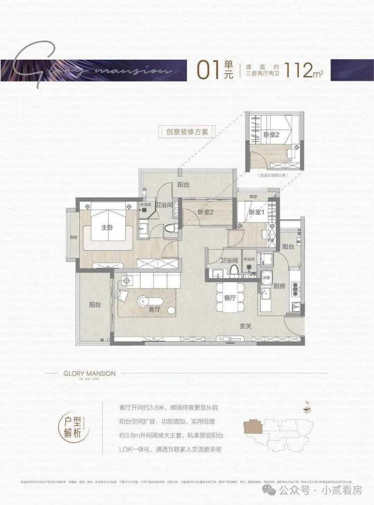 目前,已经已经建成了一栋地下4层、地上25层高的单体楼,主力户型为建面约82-117㎡的三至四房,主要针对地刚需和刚改买家。