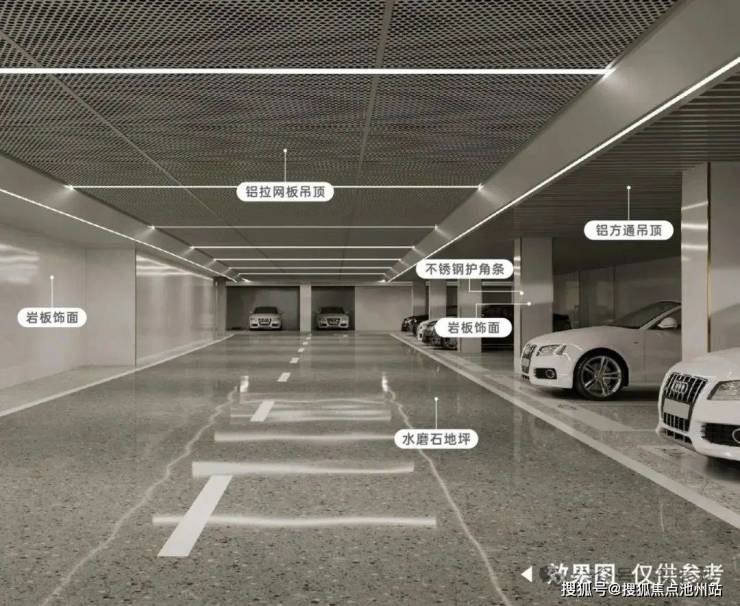 此外,作为豪宅试金石的车库,润和瑞玺台同样以“极值”为标准,入库坡道打造石材地坪,墙面采用岩板与金属质感搭配。