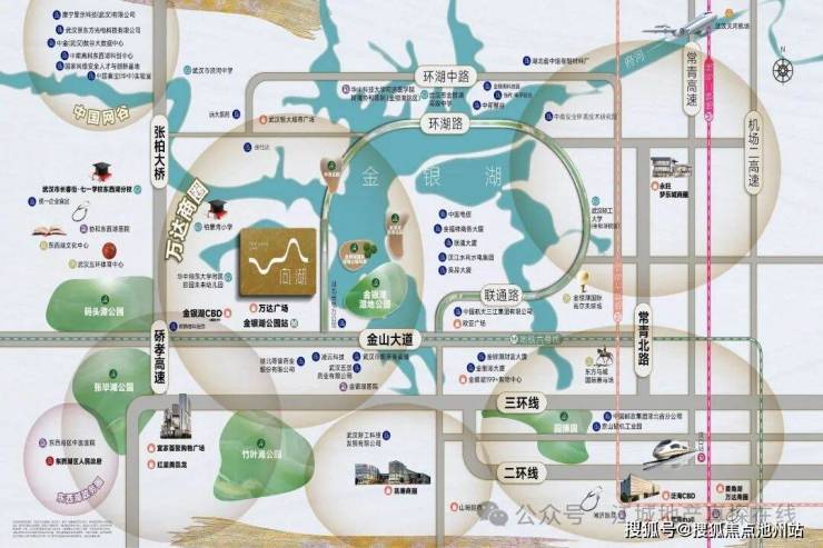 生态绿芯:拥一湖五园,紧邻金银湖,金银湖湿地公园、码头潭公园、武汉园博园、张毕湖公园、竹叶海公园环伺