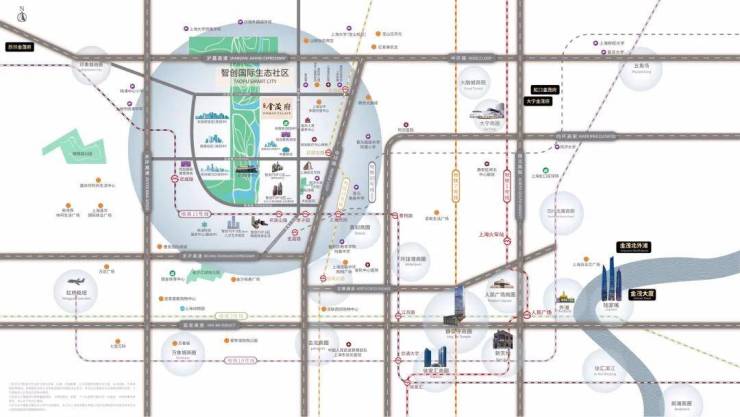 交通方面:从位置上来看,项目临近沪嘉高速,可快速直达虹桥枢纽,往南约1公里为地铁