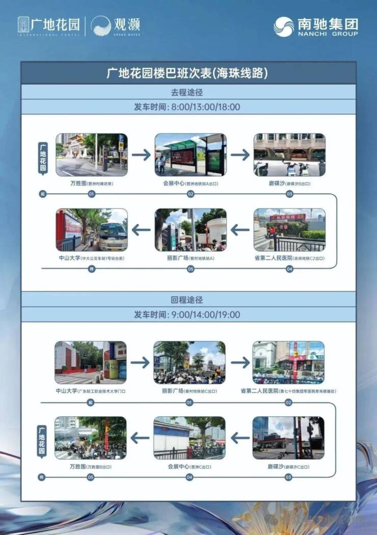 也有专线接驳地铁南村万博站(7分钟)和汉溪长隆站(10分钟),可乘坐地铁3-7-18号线。