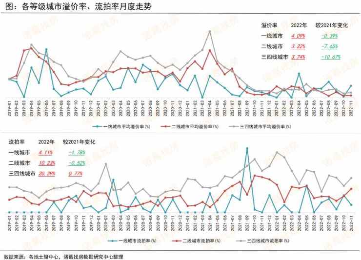 (二)2022年土地溢价率、流拍率双降,一线城市高溢价低流拍并存