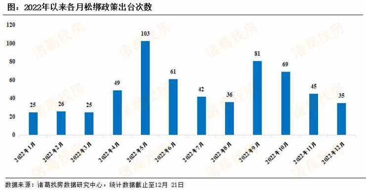 地方松绑从“小步低频”到“应出尽出”,重点城市“五限”政策放宽仍有空间。地方城市来看,紧跟中央政策的步伐,宽松政策从“小步低频、循序渐进”到“应出尽出”。根据诸葛找房数据研究中心统计,截止至12月21日,地方松绑政策出台达597次,覆盖城市超210个。5月出台次数达到峰值,单月出台超百次。