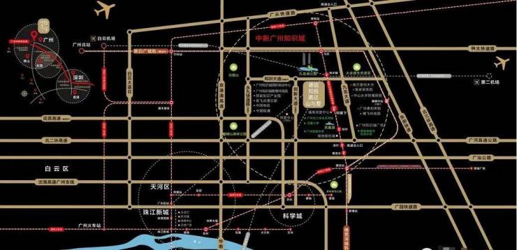 8条轨道交通:知识城至南沙(广中珠澳高铁)、知识城至广州东站(37号线)、机场联络线(白云机场至规划的增城正果国际机场)、广河高铁、新白广城轨、地铁14号线、地铁14号线支线(知识城线)、地铁21号线。其中,37号线开通后,从知识城到广州东站,只需12分钟:新白广城际预计2022年上半年完成建设并进行试运营。于2022年12月底正式开通运营,届时10分钟直达白云机场,白云机场至深圳机场也仅需40分钟。实现1小时大湾区交通圈。
