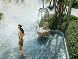 翩然的喷泉会告诉你,绿城·溪径恒庐的大门,并不是按惯常做法做成横向铺展,而是做成了一座更有纵深感的庭院:喷泉的背后,是对称的回廊;在回廊怀抱中的,是宁静的镜面水池;临着镜面水池的,又是三两组回廊下的座位。④尽…
