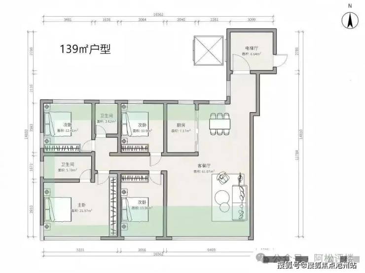 不过,该户型没有独立电梯前室,作为准四代产品,这个户型的优化空间和产品设计,相对中规中矩。