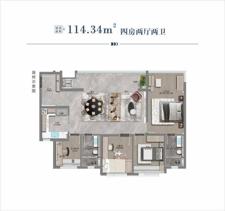 •通透明亮:开放式客厅、餐厅连通阳台,尽享阳光与景观,让生活与自然零距离。
