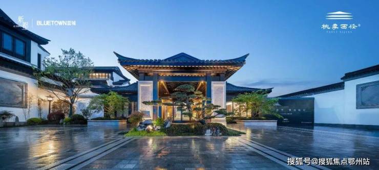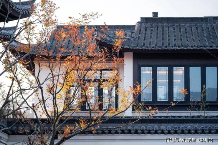 合院组团的入口, 以一座“ 落客亭” 迎宾,充满仪式感的设计,以往都出现在绿城苏州桃花源、绿城云溪玫瑰园这样的顶级大豪宅住区。