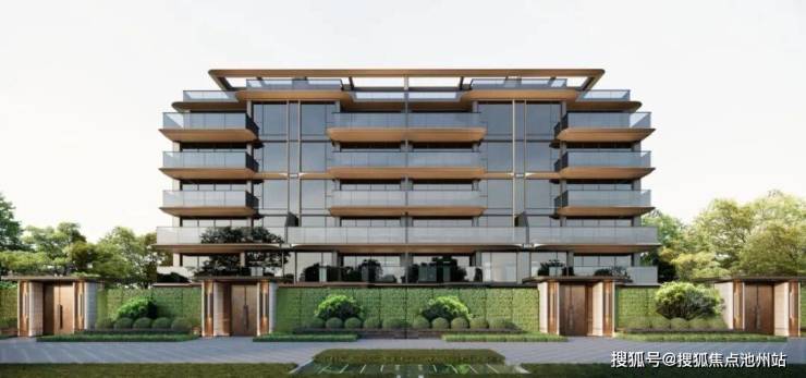 天曜序的立面为对称设计,采用大面玻璃搭配局部香槟色铝板,转角处为弧形玻璃。