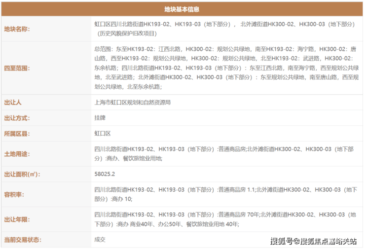 2021年2月,上海虹口城市更新建设发展有限公司(上海地产联合体)以111.35亿拿下了虹口区四川北路街道HK193-02(17街坊弘安里)、HK193-03(地下部分);北外滩街道HK300-02、HK300-03(地下部分)(历史风貌保护旧改项目)。