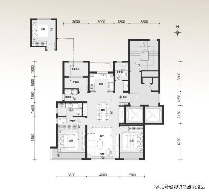 以往市内项目做设备平台的并不多见。但新规后入市的项目,大都设置了近6㎡设备平台。这部分空间,开发商改造为家政间,或直接增加房间面积。