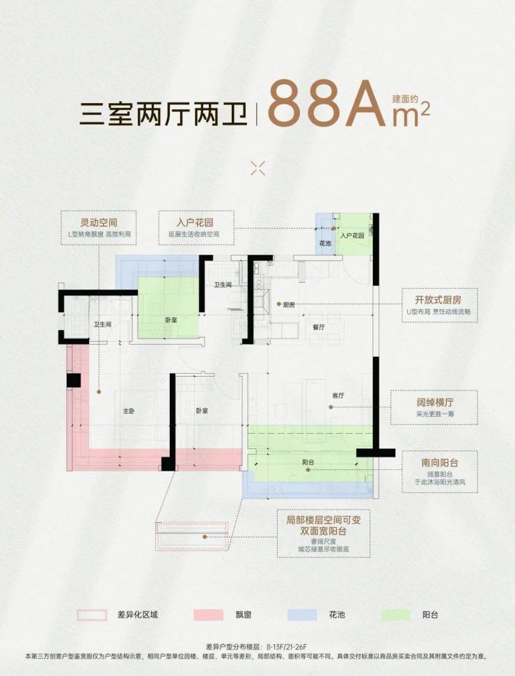 本宣传资料仅为项目信息公示用途,不构成《商品房买卖合同》的要约或承诺。宣传内容中涉及的项目规划、周边配套、政府规划、商业资源、教育资源、交通配套、户型面积等相关信息,最终均以政府相关部门审批文件及项目实际交付情况为准;