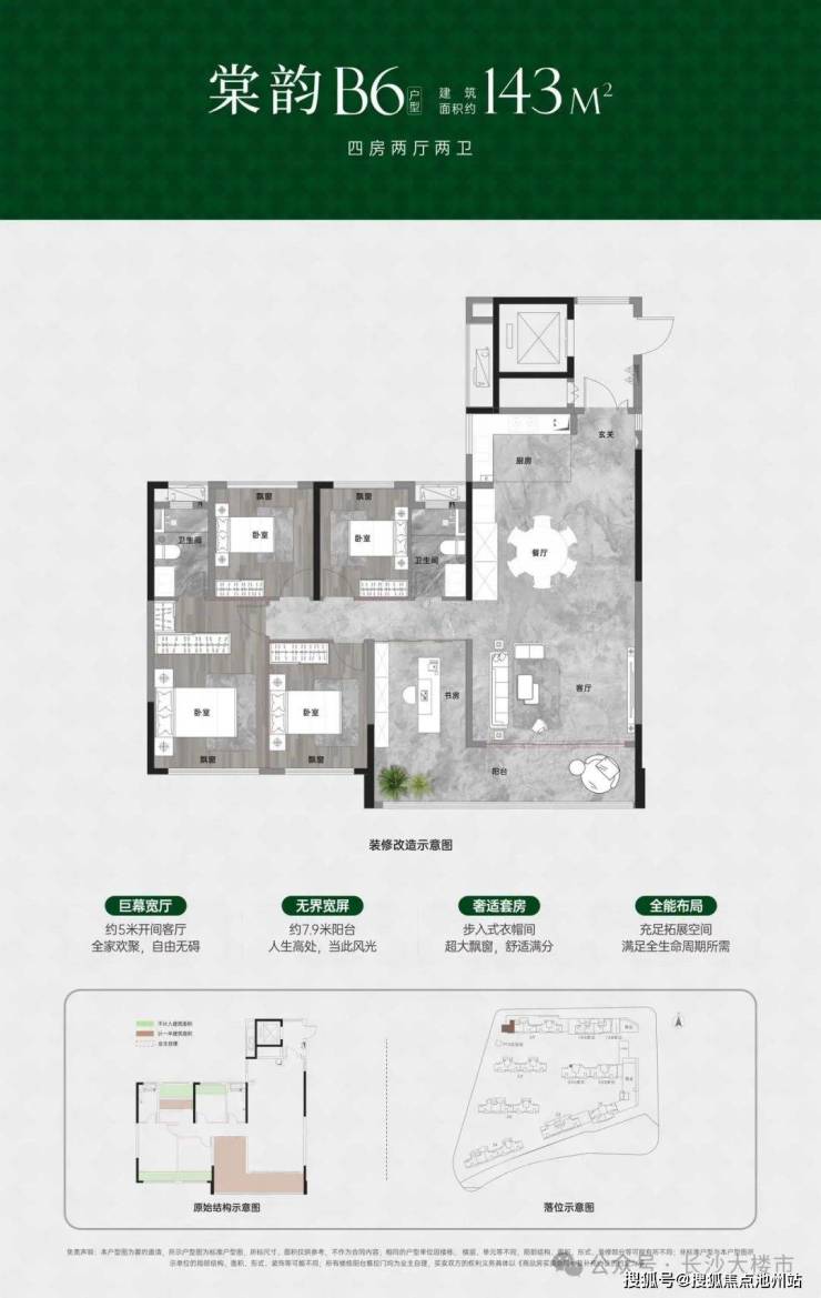 方圆900米范围内,坐拥韶山路、芙蓉路双干道,更拥揽地铁1号线、3号线、4号线、7号线(在建,预计2027年建成通车),傲立地铁4/7号线砂子塘上盖,通行全城无碍,纵观长沙,止此悦棠府。