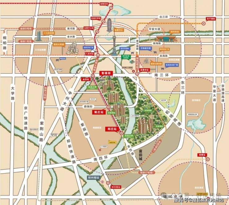 项目处于机场高速、南三环、东三环和南四环的围合区域,周边还有中州大道、陇海快速路、郑新快速路等路网环绕,为您的便捷出行提供更多保障。