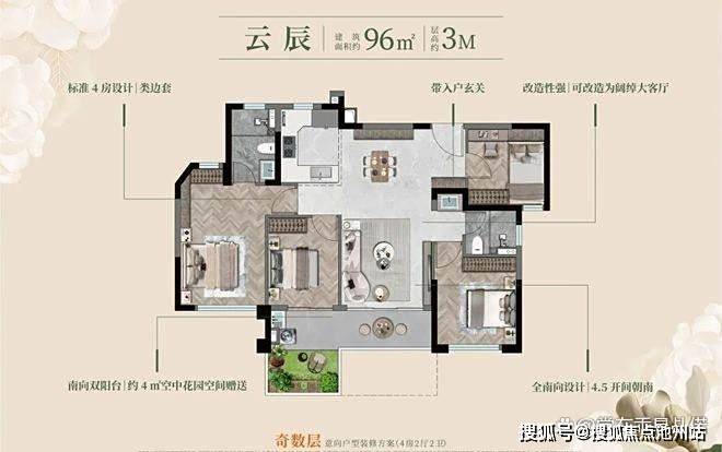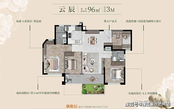 4居住更舒适了:层高约3-3.1米,户户端套,全户型四开间以上朝南,面宽新升级;