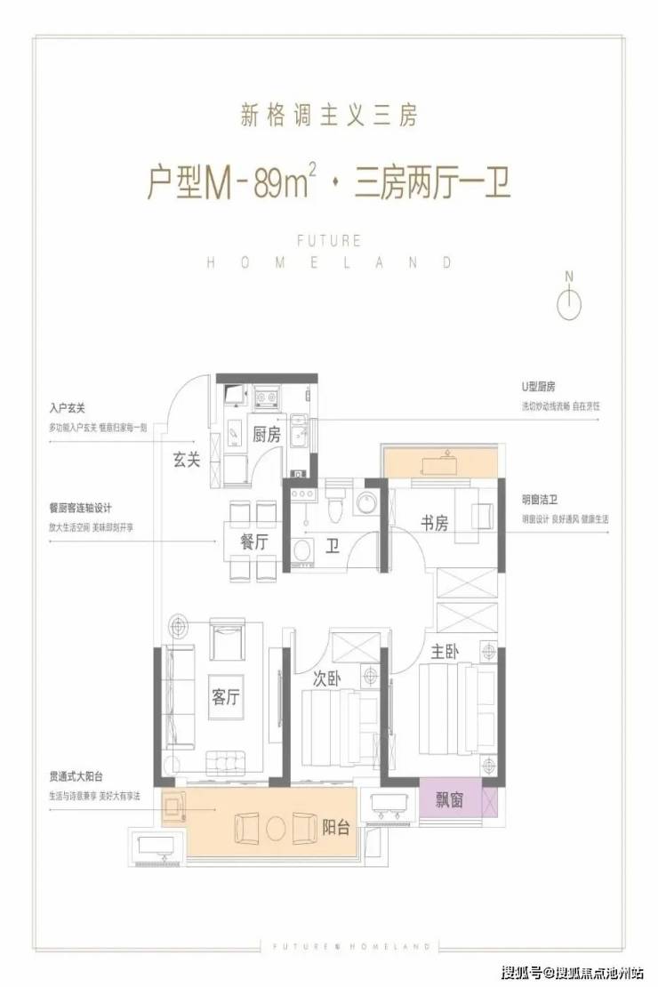 富田城·九鼎华府 平层户型·建面/89㎡