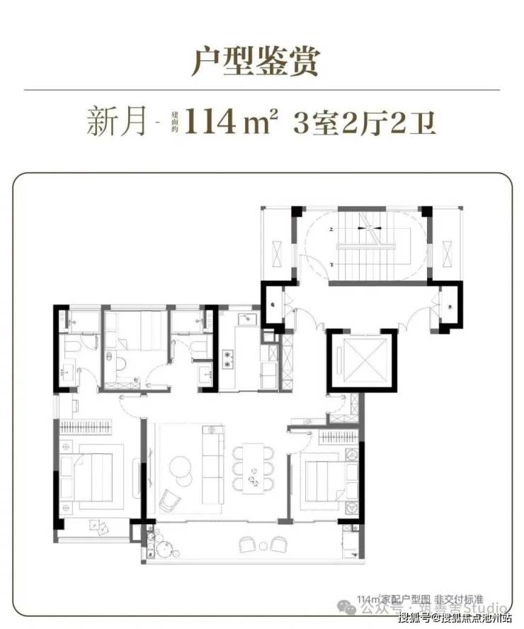 114㎡户型,精心设计3室2厅2卫,配备独立玄关,既实用便于收纳,又彰显归家礼仪。宽敞的餐客厅融为一体,面积达14.5平方米,搭配8.2米全景南向阳台,营造出开放透亮的社交空间。主卧拥有约16平方米的宽敞面积,内置独立卫浴与飘窗式茶歇区,尽享舒适与惬意。南向次卧开间约2.8米,并连接阳台,拓展了次卧的使用功能,提升了居住体验。