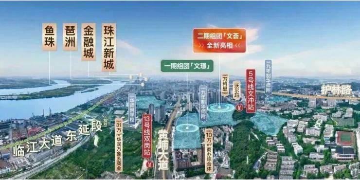 交通与教育资源堪称项目王牌。项目与5号线文冲站和13号线双岗站近在咫尺,二期组团距离文冲站更是仅约200米,一线直达珠江新城;2公里外还规划有高铁黄埔站,实现湾区通勤无缝衔接。教育配套方面,已签约华南师范大学附属高新区实验学校(九年制),距离二期组团约500米,加上社区内规划的8所幼儿园至完全中学,形成12年全龄教育闭环,业主可真正实现“目送式上学”。