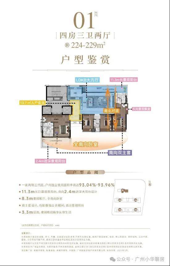 户型最小面积为130㎡三房,最大面积为224-229㎡四房,共2种户型。