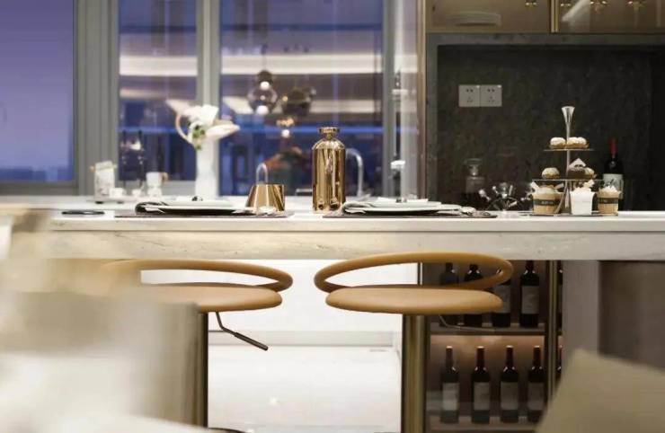在美食区,白金沙天然石材打造的岛台,兼顾了颜值与实用性。在岛台的后面和对面,还有丰富的储物空间可以使用。这个300方空间整体非常方正,通透。南向面宽更是达到了阔绰的约16.2米,再加上全落地玻璃的设计,十分敞亮大气。顺着窗外望去,不远处的运河亚运公园更是能尽收眼底。