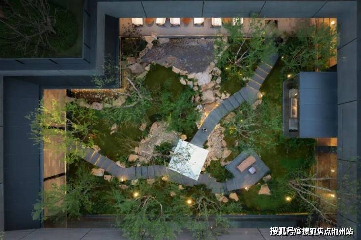 无论是大门围墙的高湖石,还是廊道景墙的(柏坡黄)花岗岩、又或是中庭景观的山西黑置石……