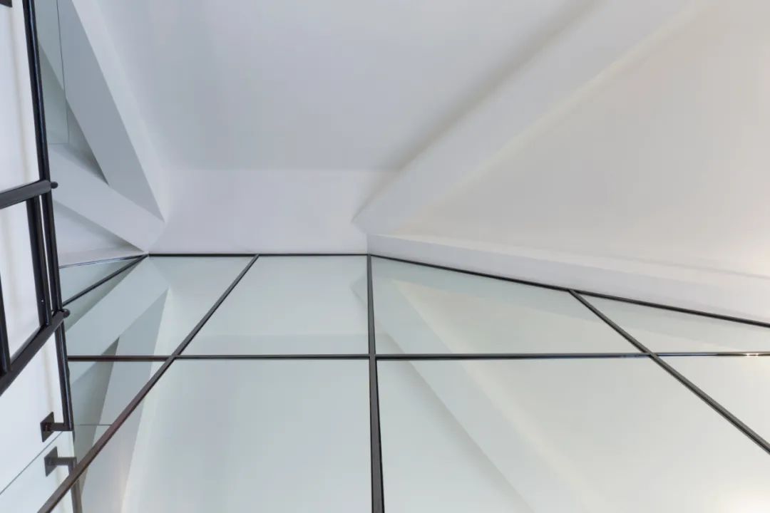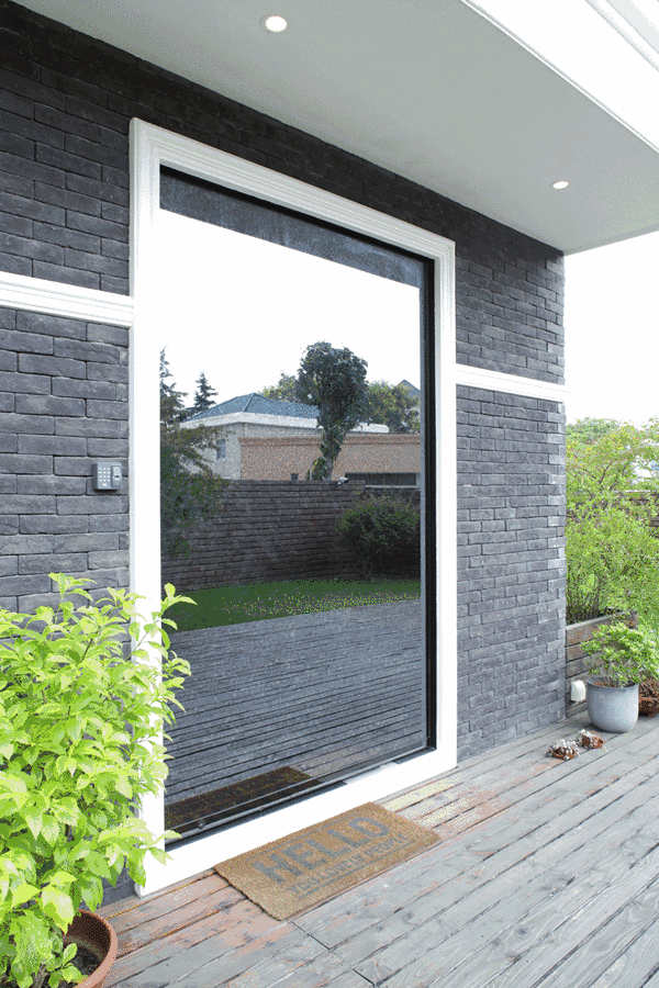 90年代中式风的建筑外观被重新改造,用层层的直线条勾勒,因为业主喜欢欧式现代风范的简约;入户门被设计成带有镜框的暗门,因为业主希望这里是私密的,不会被轻易发觉;破旧狭小的窗户置换成落地窗,因为业主喜欢阳光洒满室内;墙体被往外延展,客厅被打通,因为业主喜欢空间的宽敞。