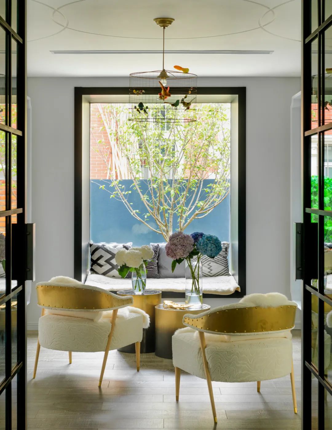 一楼的会客厅,客厅的墙被打开,透过窗户和折叠门,就可分别看到不同的景观。一树一景,被巧妙的融入观者的眼中。