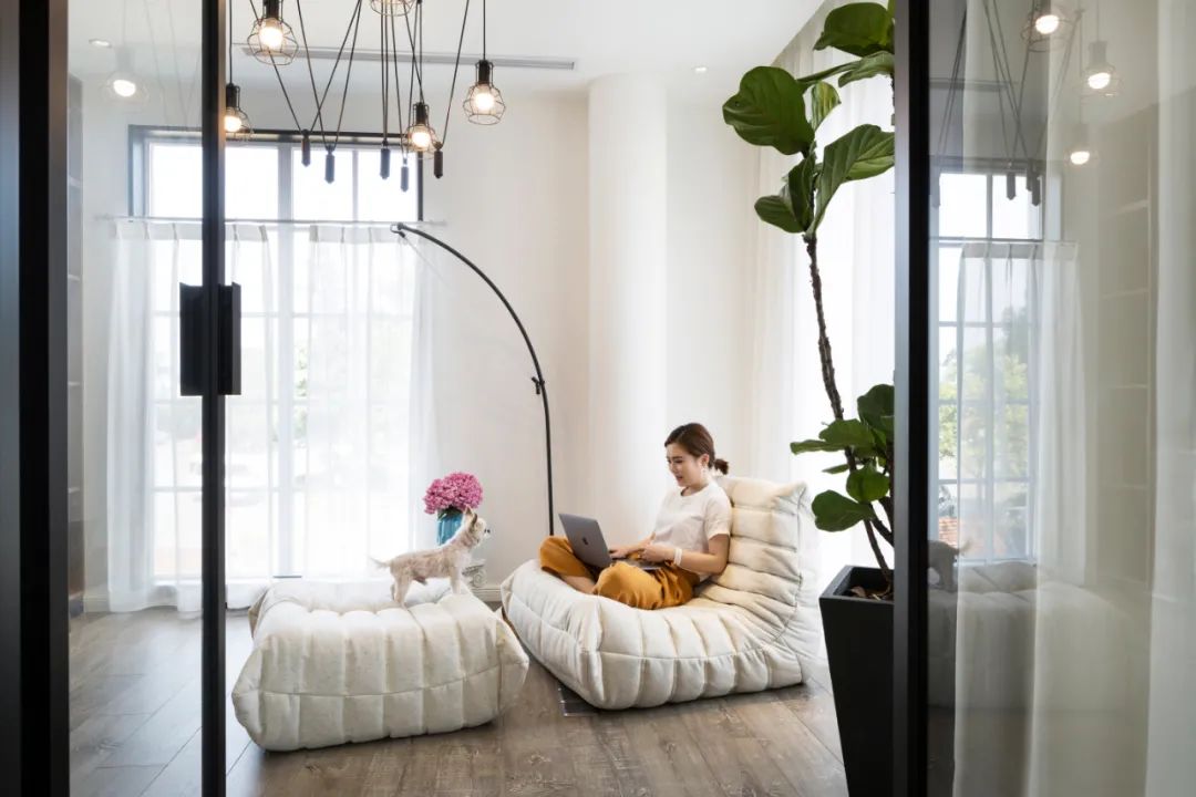 为了更好的采光和层高的需求,二楼原有的阁楼被敲掉,工作室顶部的空间被打开,豁然开朗,loft感十足。