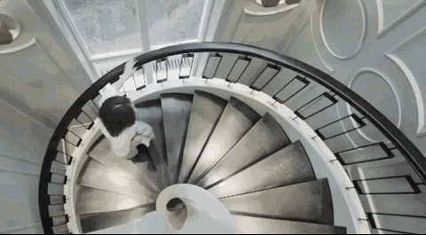 原本木质普通楼梯显得笨重与压抑,空间更加局促,所以设计师设计成黑白相间的旋转式楼梯,那种浪漫的法式风情扑面而来。