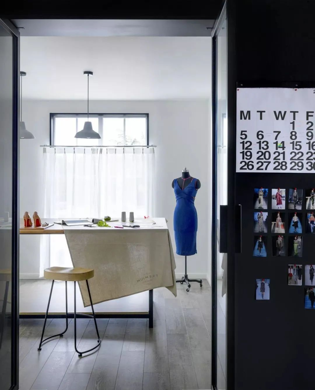 用做旧的复古镜面来做入户门,让拜访者一时找不到入口在哪儿,调皮又有趣。这门还象征着一丝女性的神秘感,毕竟女主人Kathy是时装设计师,她的理念也贯穿空间里的各个细节。员工上班前在镜前整理好仪容,每天都以最棒状态开始新一天!