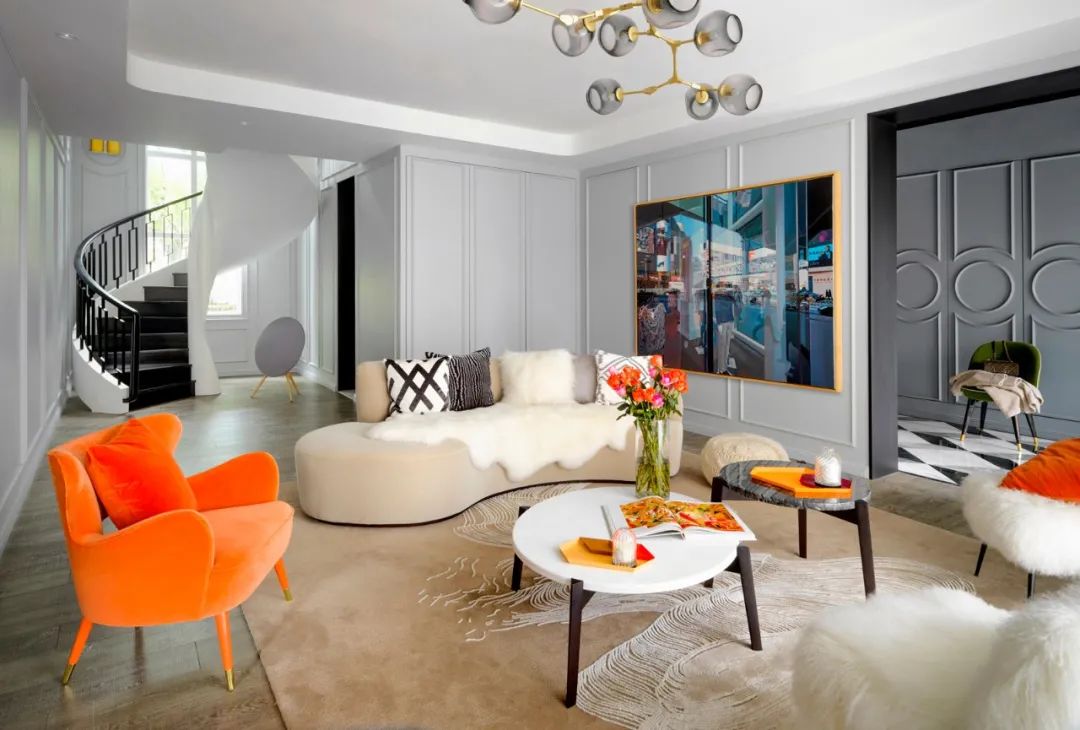 作为一个介于家与工作室之间的居所,Nathan用他对生活方式艺术的理解和多年的设计经验,在设计中,注入了法国的浪漫主义情怀,柔和的展现着空间的迷人。他用高级的黑白灰做基底,用鲜艳的色彩做点缀。柔软的轻纱、温暖的皮毛,让整个空间被浓浓的女性气息所包围,低调而奢华。