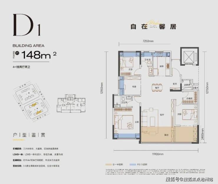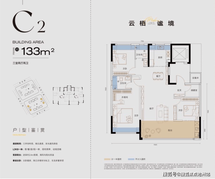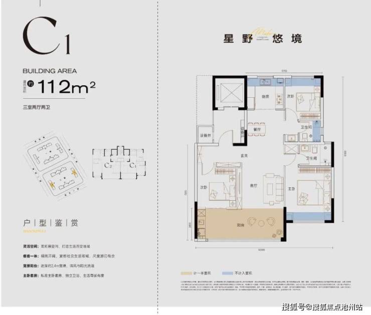 ①122%实际得房率:通过约56平三大露台、2.4米宽大阳台、客厅挑空、飘窗等方式整体赠送面积达到108㎡,得房率122%。