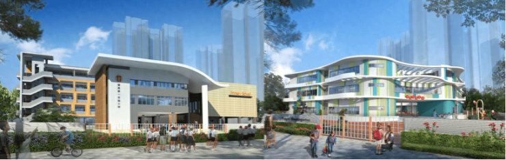 五所学校:2所幼儿园,2所小学、1所48班中学(一期小学——石楼中心小学山海连城学校、广钢利联花园幼儿园已开学)