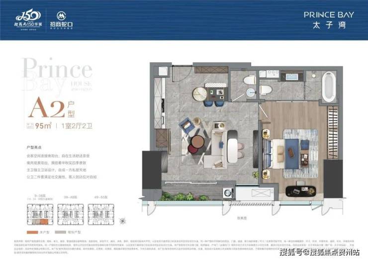 A2户型:95m²,1房2厅2卫