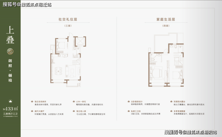 叠墅产品分为4F、6F层叠加, 主力产品建面约约122-133㎡上叠,132㎡大平层,131-145㎡下叠。大尺度厅堂、星空露台、地下空间,满足业主们对“有天有地有星空”别墅居家体验的幻想!