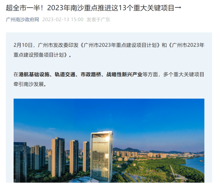 【基建】2023年广州重点推进24个重大项目,南沙的占据13个。