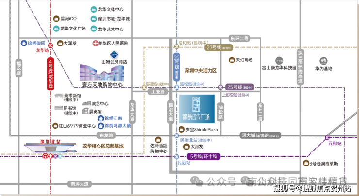 道路交通:楼下工业路速达龙华中心区,油松路接布龙路速达全城各区,项目车行约19分钟快速接驳深圳北站、约25分钟直通福田,便捷交通速达全城;