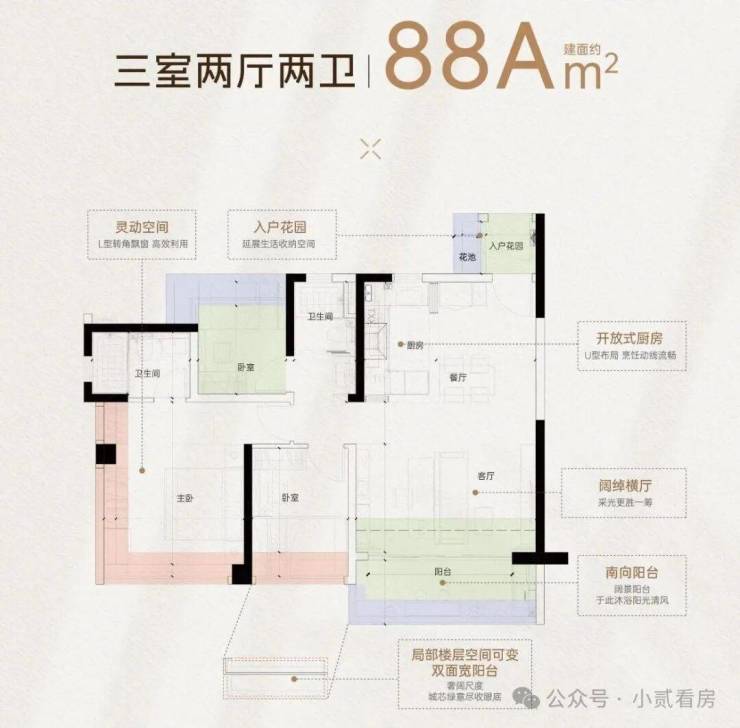 项目更是拿出了14种变异户型,如约77㎡和88㎡,都有A、B设计差异,尽可能满足不同人群的需求。