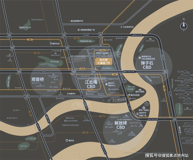 项目紧邻江北嘴CBD,交通十分便利。周边有多个公交站点,包括朝天门大桥北站等,距离地铁9号线五里店站仅约550米