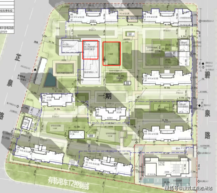 和汉韵公馆类似,项目从大门进入后,即2F的会所(1F以后会是物业用房,2F为体育馆),会所连接下沉庭院,但是和汉韵公馆不同的是没有风雨连廊的配置,整体的公共空间有限,也是受地块面积所限。