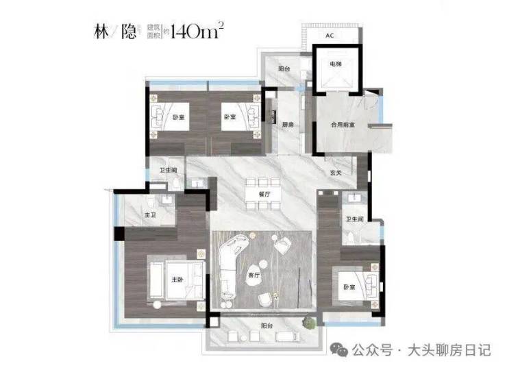 ——约17.6米南向面宽·9.4米南向景观阳台·家族式社交大方厅