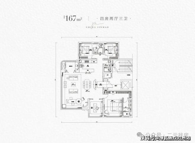 该项目为准四代住宅,一共规划5栋高层住宅,楼间距约超过60米。总高为31/32/33层,户均建面约133.8㎡,偏改善客群。