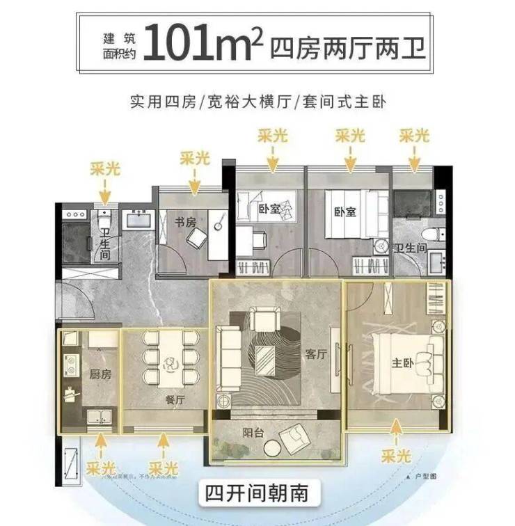 【高层户型鉴赏-超95%南向户型设计,高拓展高赠送】