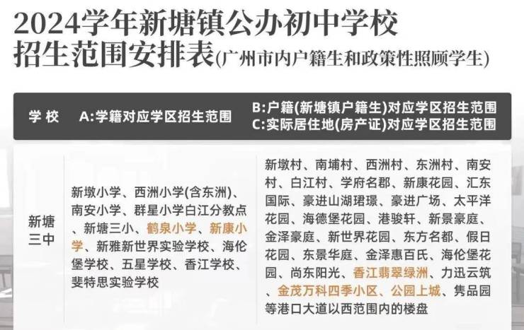 目前对口的中学是新塘三中,新塘三中来头更是不小,作为省级标准公办中学,今年初已被增城广附接管,3月份更是成为广州七中的成员校,拥有了双名优教育集团的加持。